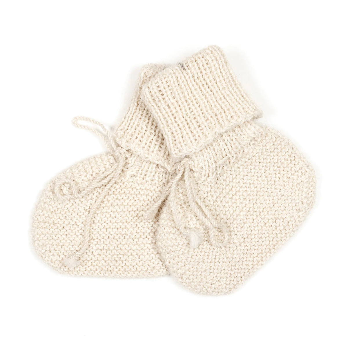 Wunderschöne Babyerstlings Booties aus weicher reiner Alpacawolle – handgestrickt in Bolivien im Rahmen einer Fair-Trade-Zusammenarbeit.