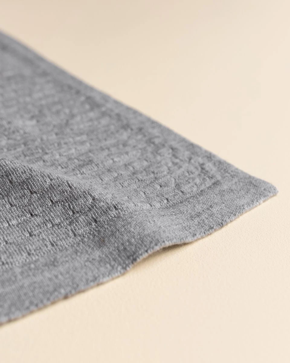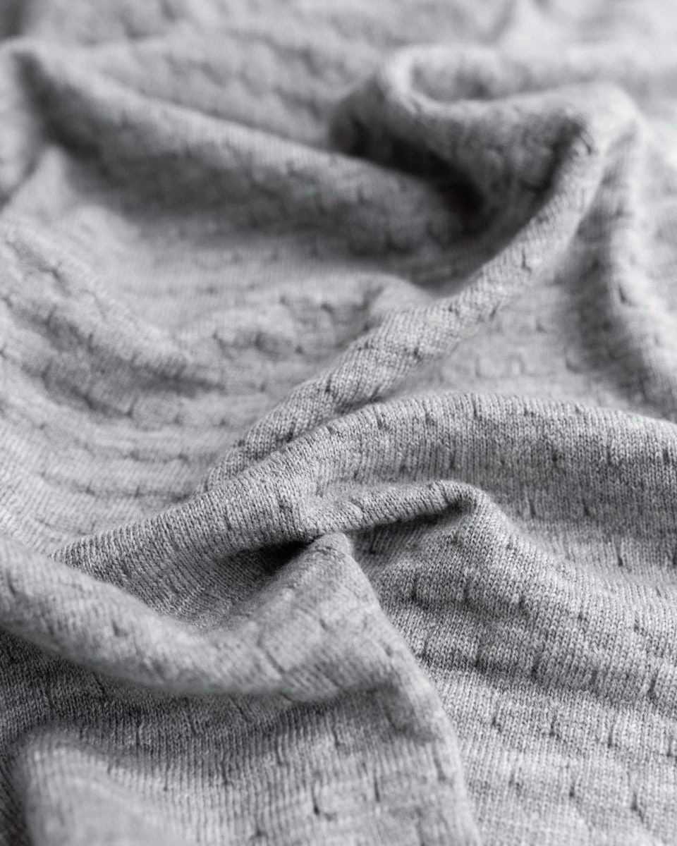 Wunderschön weiche mulesing freie hochwertige Merinostrickdecke für Babys von Hvid in einem zauberhaften Strickmuster in zartem off white. Ein tolle erste Babydecke aus 100% italienischer Merino Wolle hergestellt in Belgien.