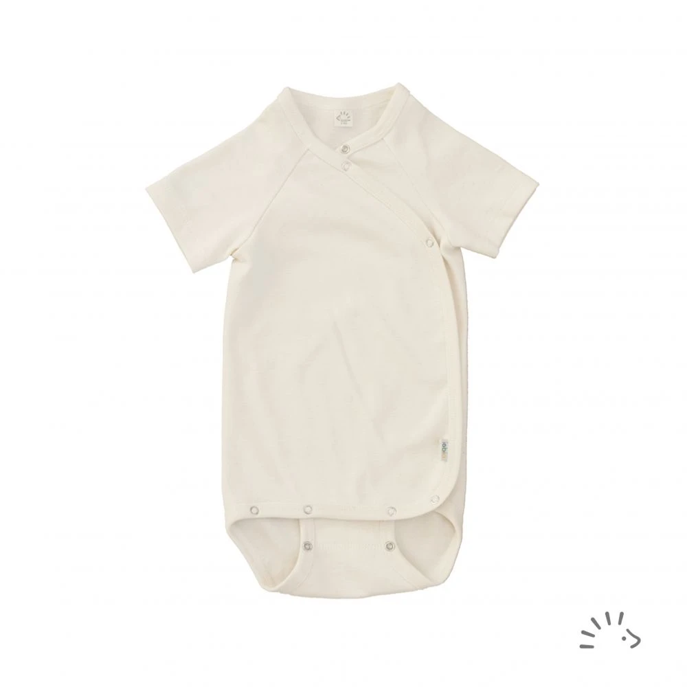 Der Wickelbody aus Wolle-Seide ist ein perfektes Geschenk zur Geburt.