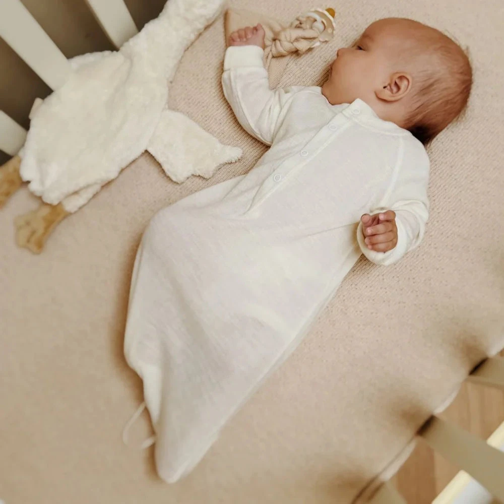 Das wohl beste Produkt, dass du deinem Baby und Kind das ganze Jahr unter Tags und in der Nacht anziehen kannst ist Merinowolle! Den feinen weichen Schlafsack von joha kannst du perfekt ab dem ersten Tag deinem Baby anziehen und darunter mit einem Wolle Seide oder reinem Merino Body oder Einteiler kombinieren. Der Schlafsack ist nicht zu dick und ist vor allem auch für die Babys, die im Elternbett schlafen besonders gut geeignet – übrigens auch im Sommer – nur dann z.B. mit einem Bambusbody darunter und nackigen Füßchen! Habt eine kuschelige und entspannte erste Babyzeit in natürlichen Materialien.