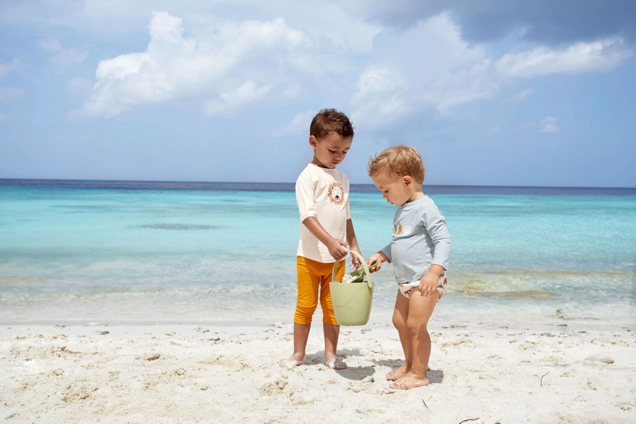 Das kurzärmlige LÄSSIG Kinder UV Shirt aus 82 % Polyester (recycelt) und 18 % Elasthan sorgt mit UV-Schutz 60 und verspielten Prints für einen unbeschwerten Wasserspaß. In Verbindung mit entsprechender Sonnenlotion und mit der passenden Schwimmwindel oder Badehose und einem Sonnenhut ist das Kinder Badeoutfit komplett.