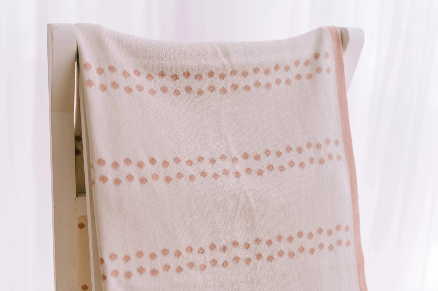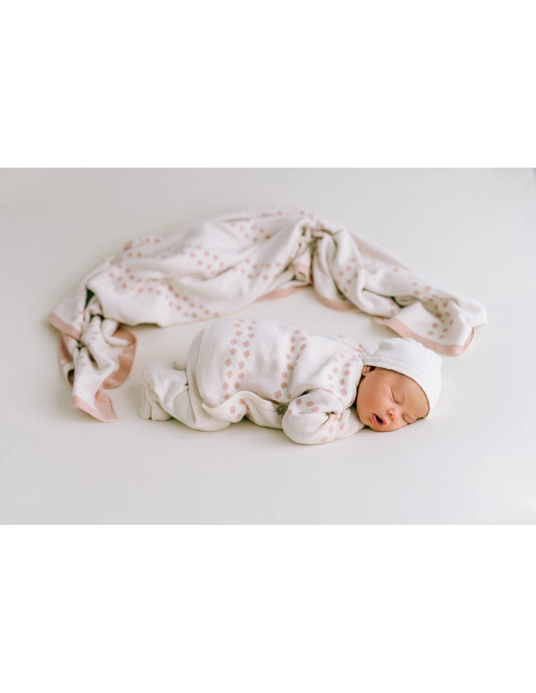 Unglaublich weiche Babydecke in rose ecru mit Punkten – perfekt für Neugeborene.