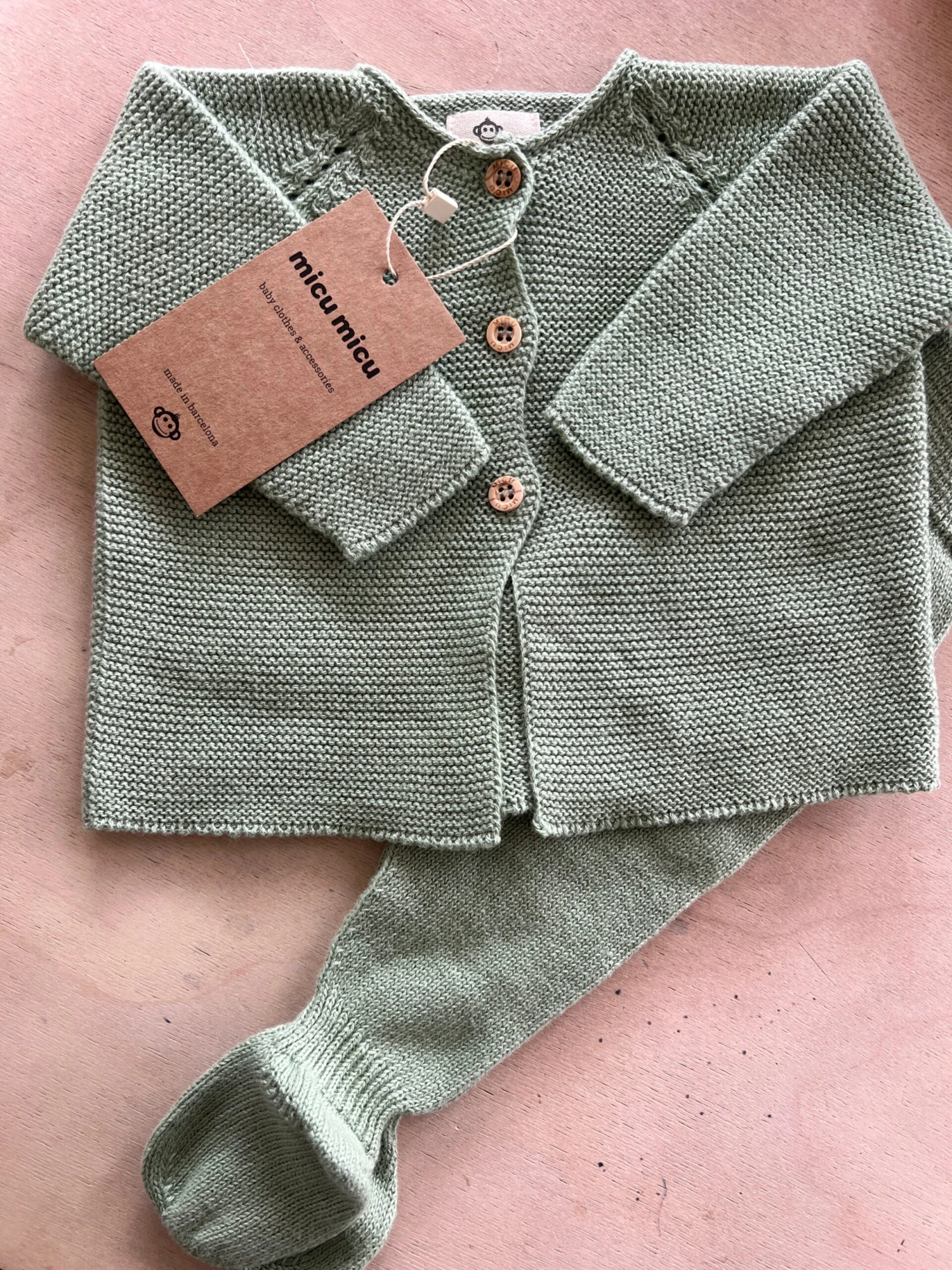 Unglaublich weiches erstes feines Strick Newborn Set aus 100% Biobaumwolle bestehend aus einem feiner Strickjacke und einer zuckersüßen weichen Strickhose mit Fuß. Ein tolles erstes Babyoutfit – perfekt für das ganze Jahr – kombiniert mit einem Wolle Seide Body das perfekte Erstlingsoutfit. Ein tolles Geschenk auch zur Geburt.